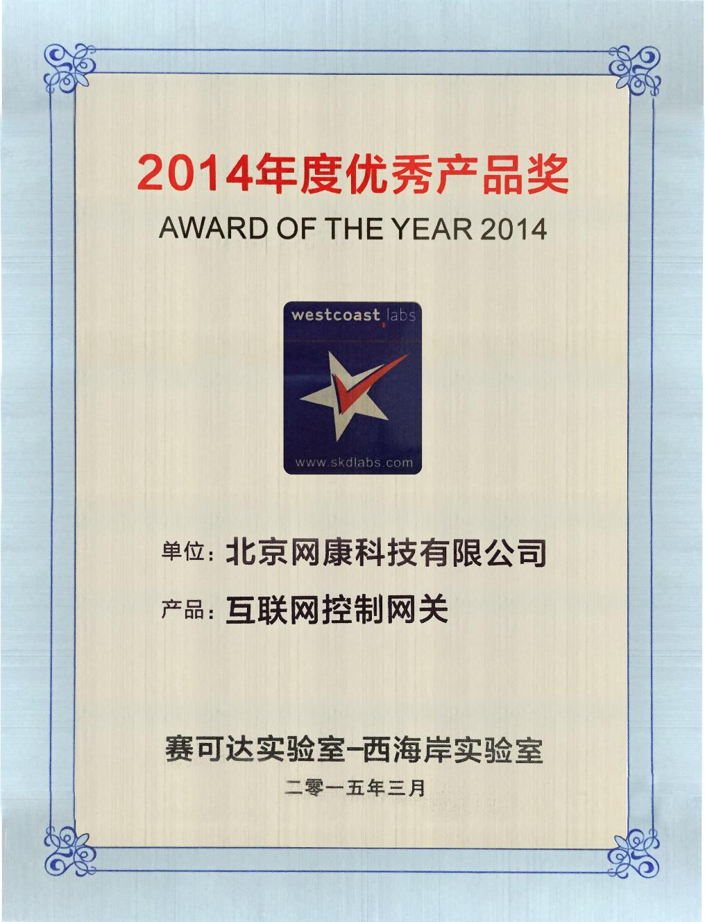 网康上网行为管理获得“2014年度卓绝产品奖”