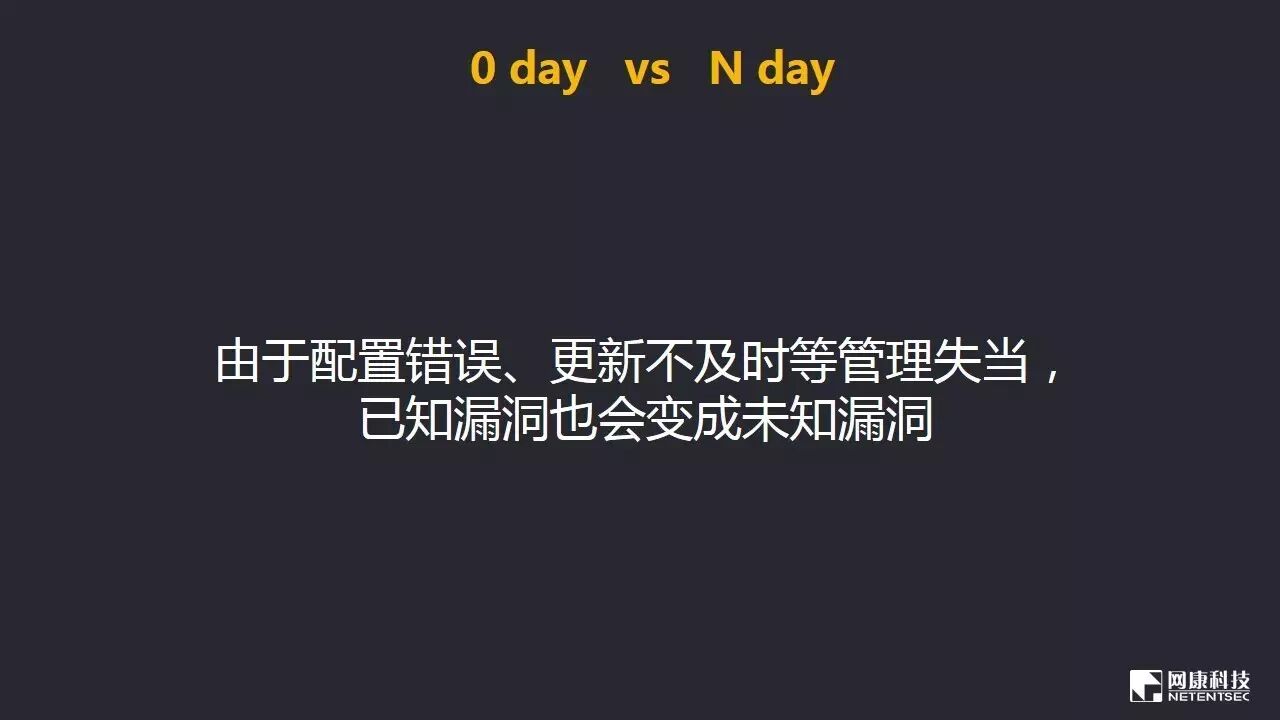 再次,也是危害巨大但经常被人们忽视的一点,通常人们对发现未知威胁的技术更感兴趣,而忽视了对已知威胁的管理,造成特征库更新不及时、配置管理不当,系统受到已知威胁的攻击。网康慧眼云为客户检测失陷主机时,发现由于N day管理不当导致的失陷问题,非常普遍。