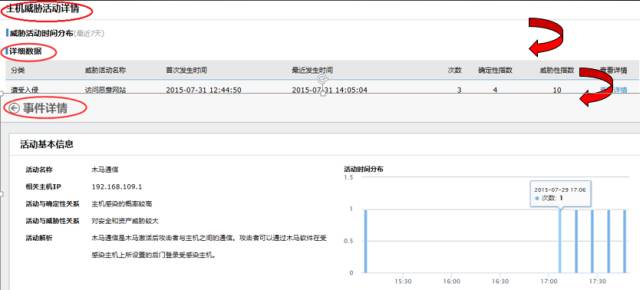 通过失陷主机的威胁活动分布,详细数据列表等逐层钻取,利用威胁情报技术进行整个失陷过程的还原,分析出已经产生的危害,为安全评估提供“看得见”的支撑,便于技术人员找到对抗方法。